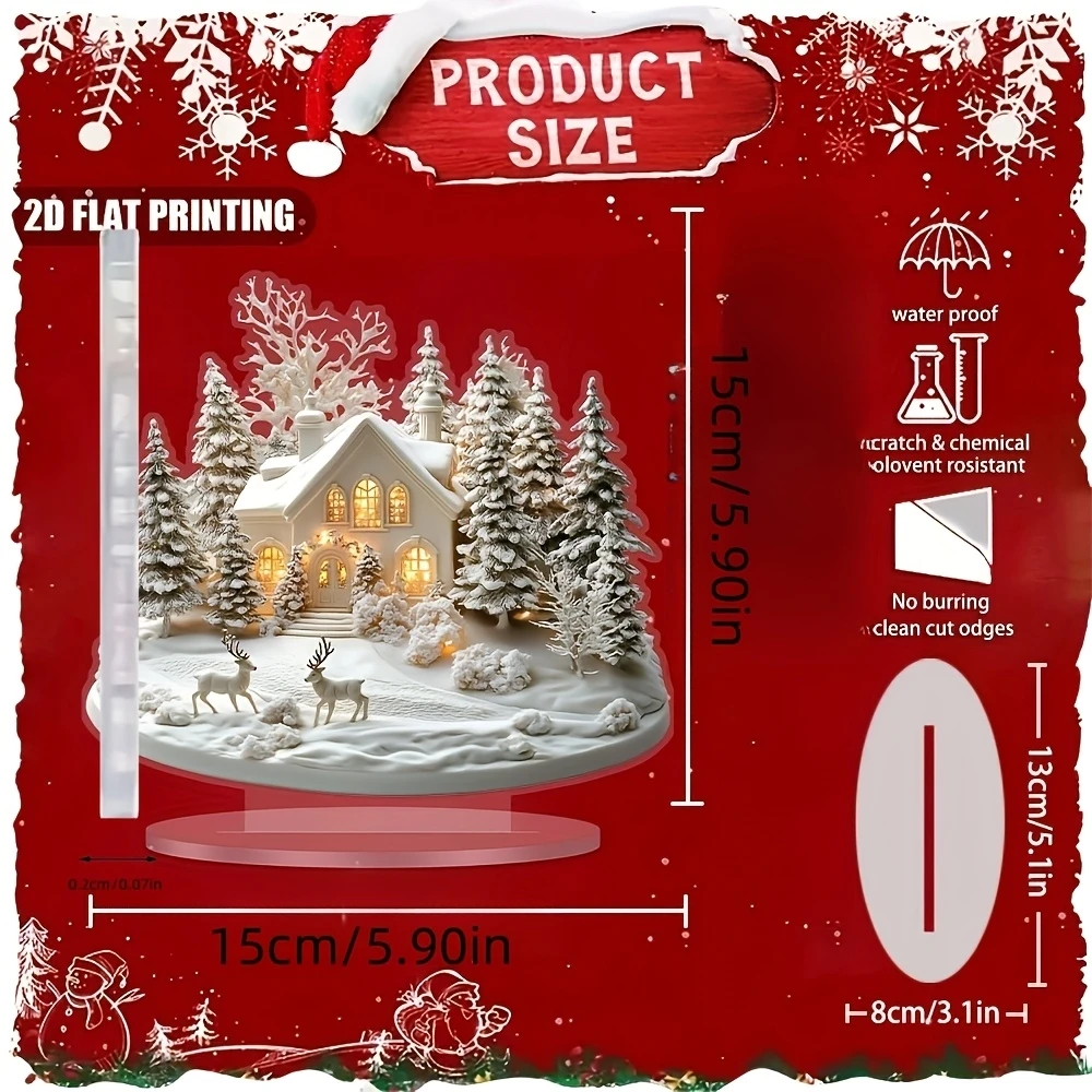 2D Elegant Acrylic Christmas Decoration Snowhouse & Reindeer Scene Home Office Ornaments Festive Warm Party Gift Photo Props